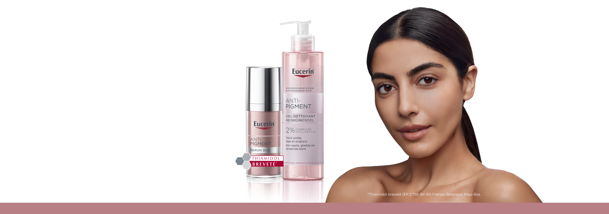 Les produits de la gamme ANTI-PIGMENT contiennent du Thiamidol**, un ingrédient efficace et breveté qui agit à la source de l'hyperpigmentation en réduisant la production de mélanine. Il a été prouvé cliniquement et dermatologiquement qu'il réduisait les taches brunes et empêchait leur réapparition. Les premiers résultats sont visibles après deux semaines et s'améliorent continuellement avec une utilisation régulière.