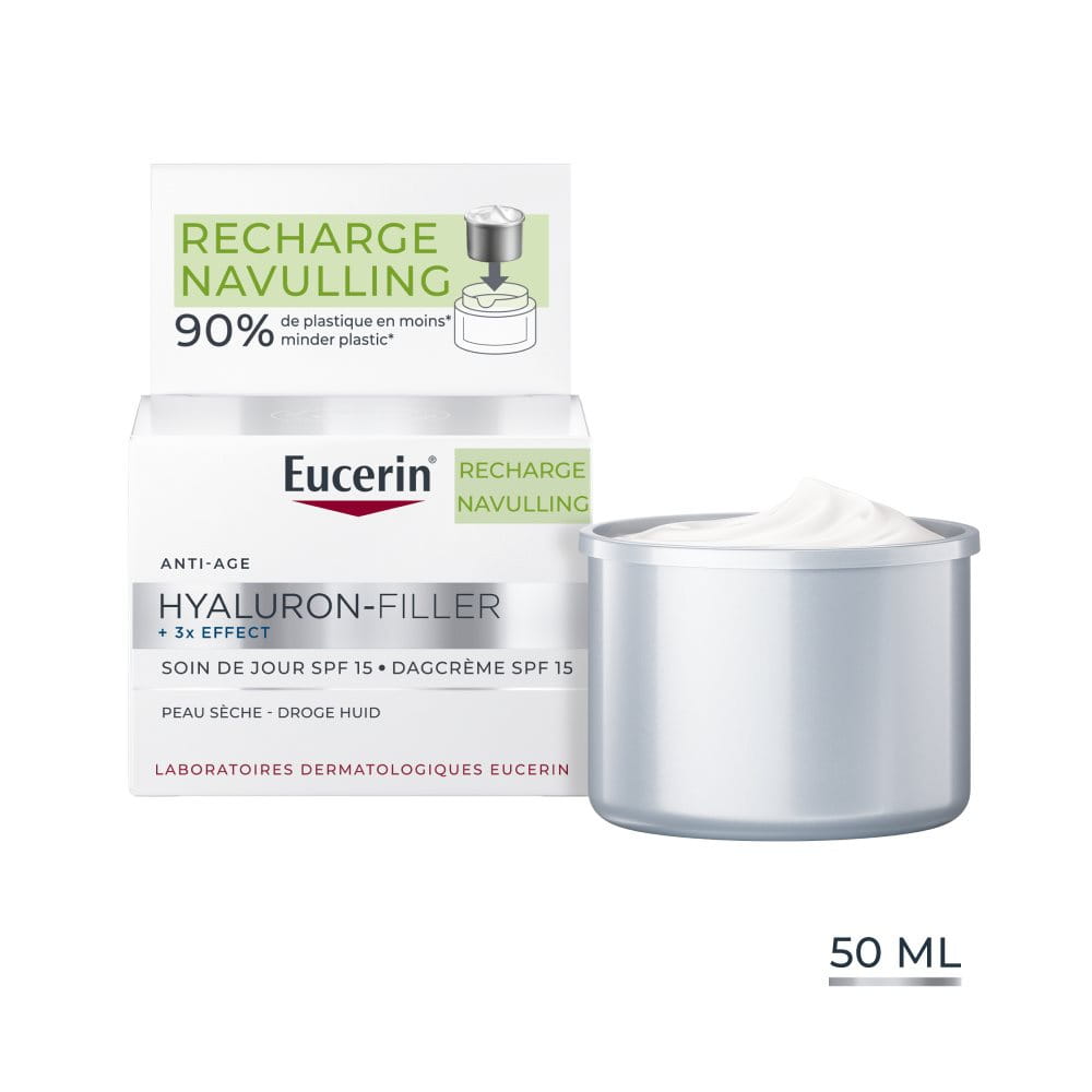 Puis-je utiliser la recharge Soin de Jour HYALURON-FILLER + 3x EFFECT SPF 15 pour peau sèche sans pot ?
