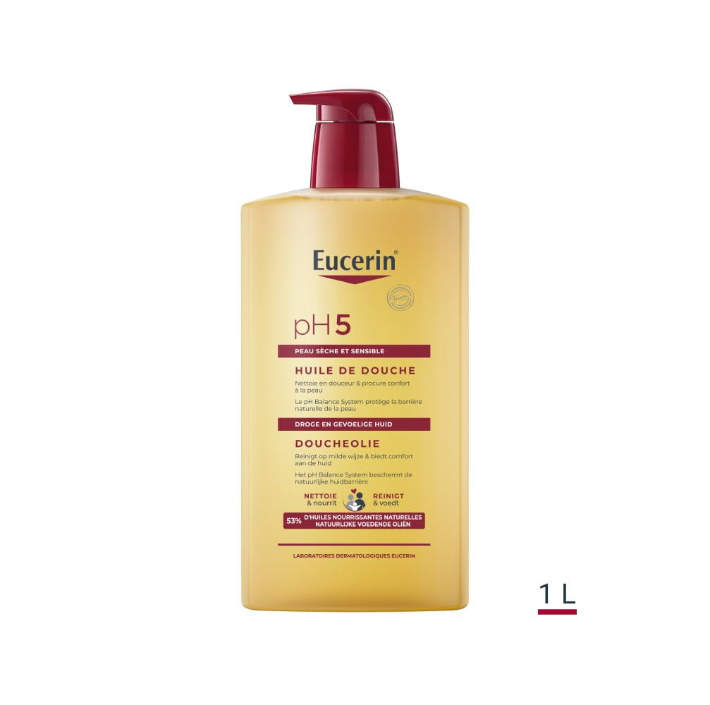 L'Huile de Douche pH5, avec 53% d'huiles naturelles et du Dexpanthénol, nettoie en douceur la peau sensible. Elle respecte le microbiome cutané en n'influençant pas son équilibre naturel.