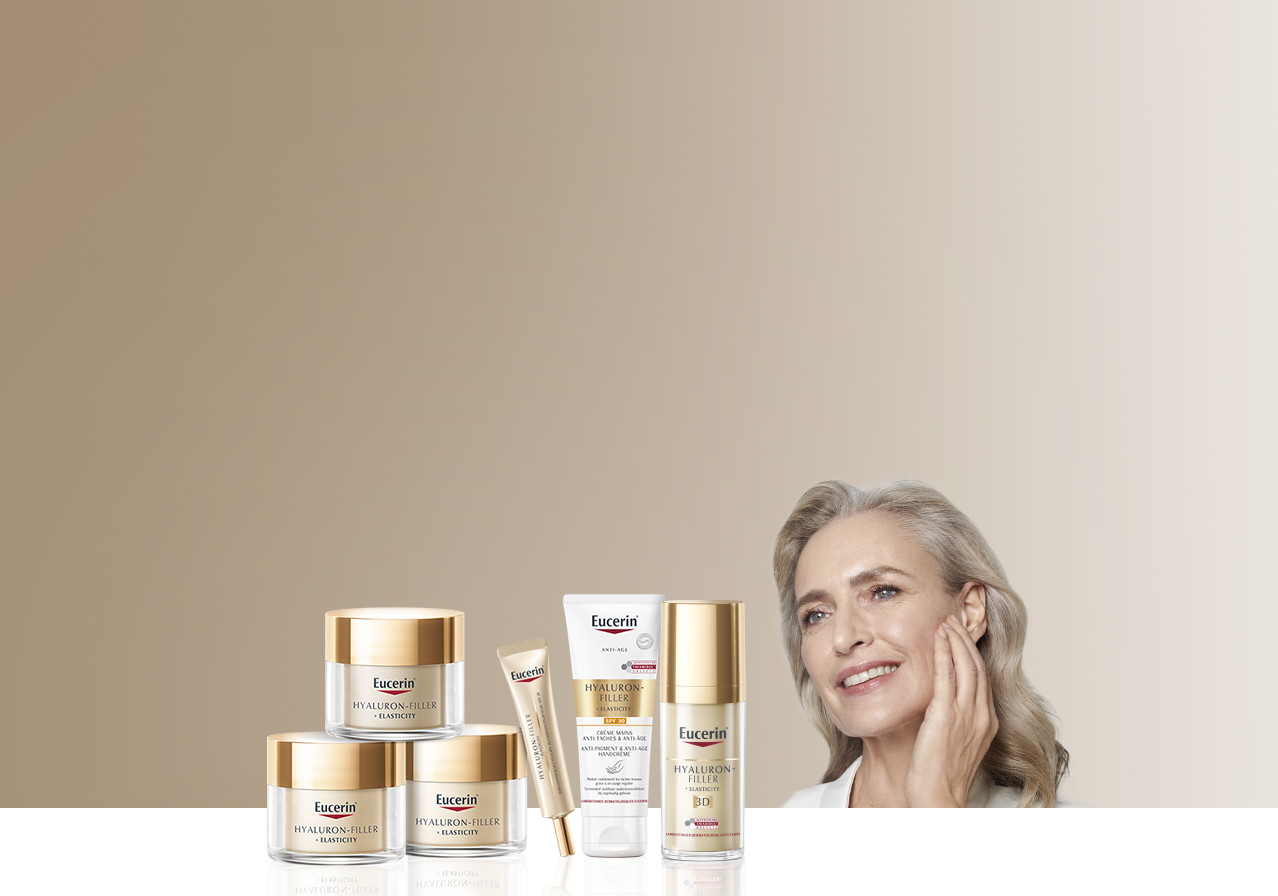 La gamme Eucerin HYALURON-FILLER contient trois gammes innovantes, des études cliniques et dermatologiques prouvent qu'elles offrent chacunes de multiples bénéfices anti-âge. Chaque gamme a un objectif principal différent (rides, perte de volume, et perte d'élasticité) pour que la peau reçoive les soins dont elle a besoin à chaque étape de son processus de vieillissement.