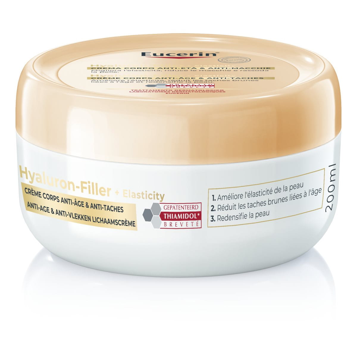 Parmi eux, se trouve HYALURON-FILLER + ELASTICITY Crème Corps Anti-âge & Anti-taches qui apporte à la peau plus d’élasticité, de fermeté et la laisse plus lisse, lui donne plus d’éclat, l’hydrate et la redensifie. Un produit pour le corps avec une triple action anti-âge et une haute tolérance cutanée.